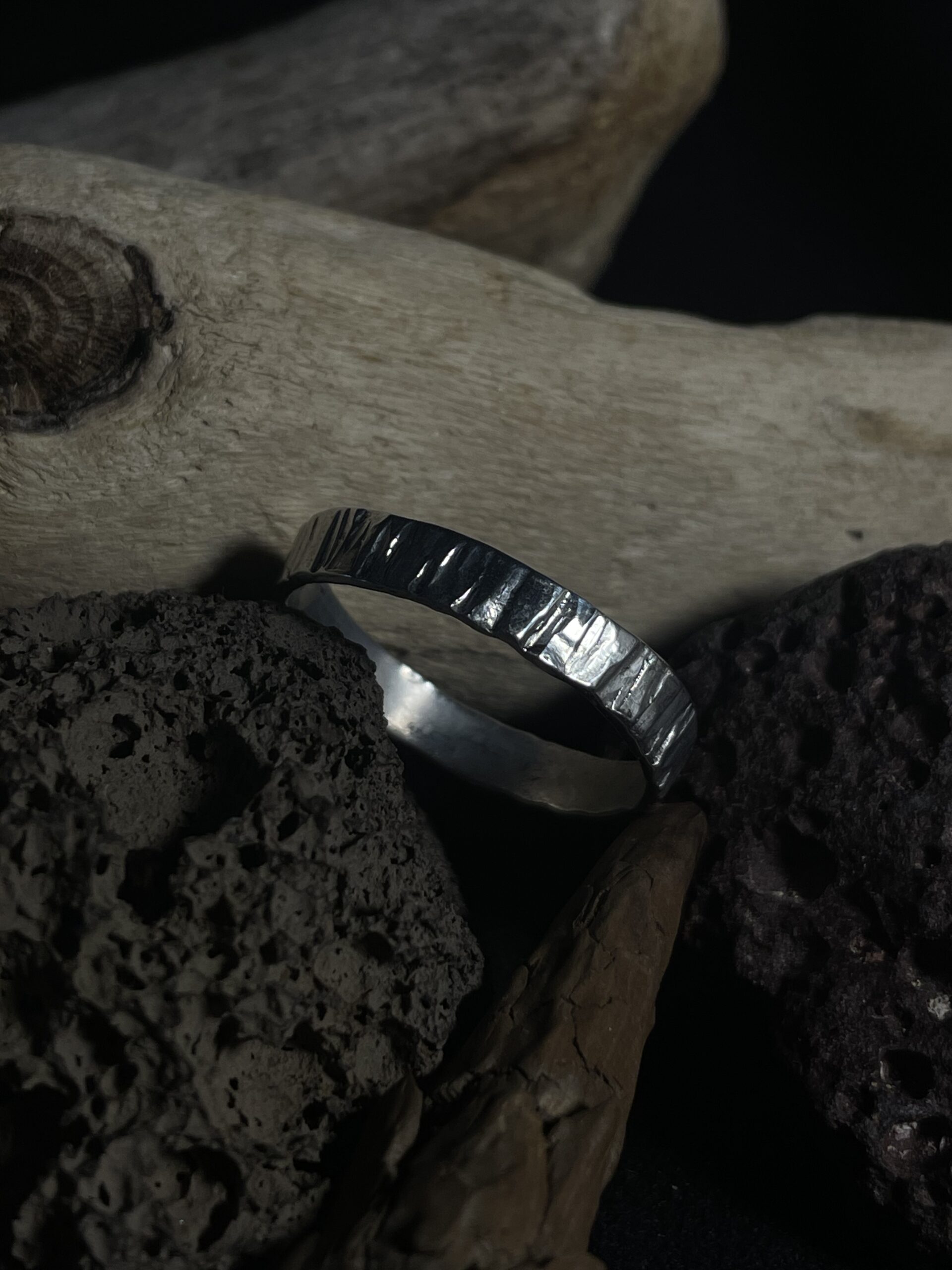 cette bague au martelage droit et irrégulier s’inscrit dans la collection IMPACT.