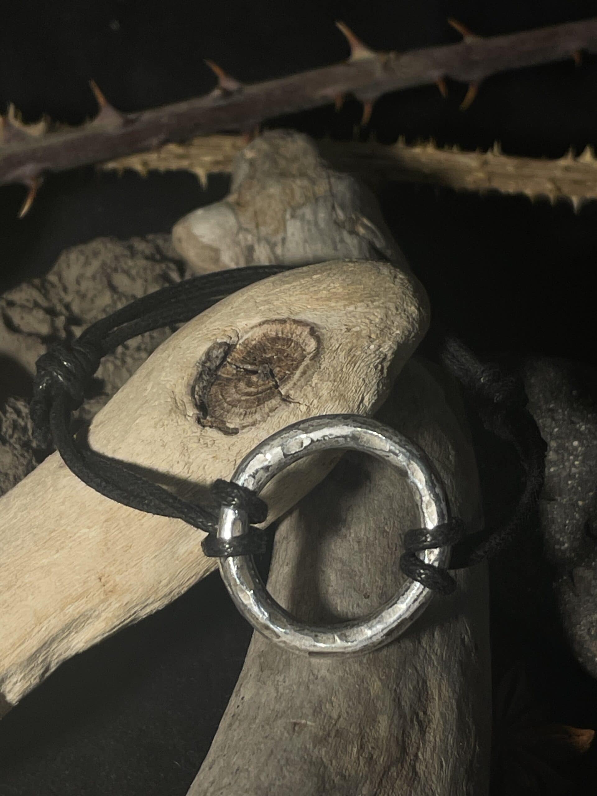 Bracelet en aluminium martelé et poli.