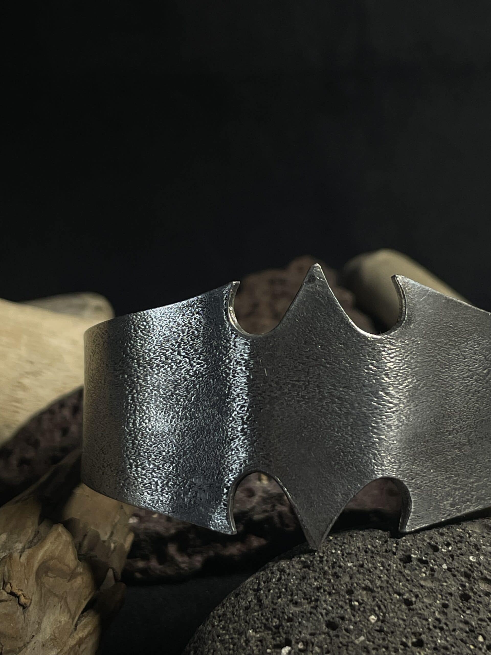Avec sa texture irrégulière, cette manchette de la collection GRAVITY, évoque des formes tribales traversées par la fiction.