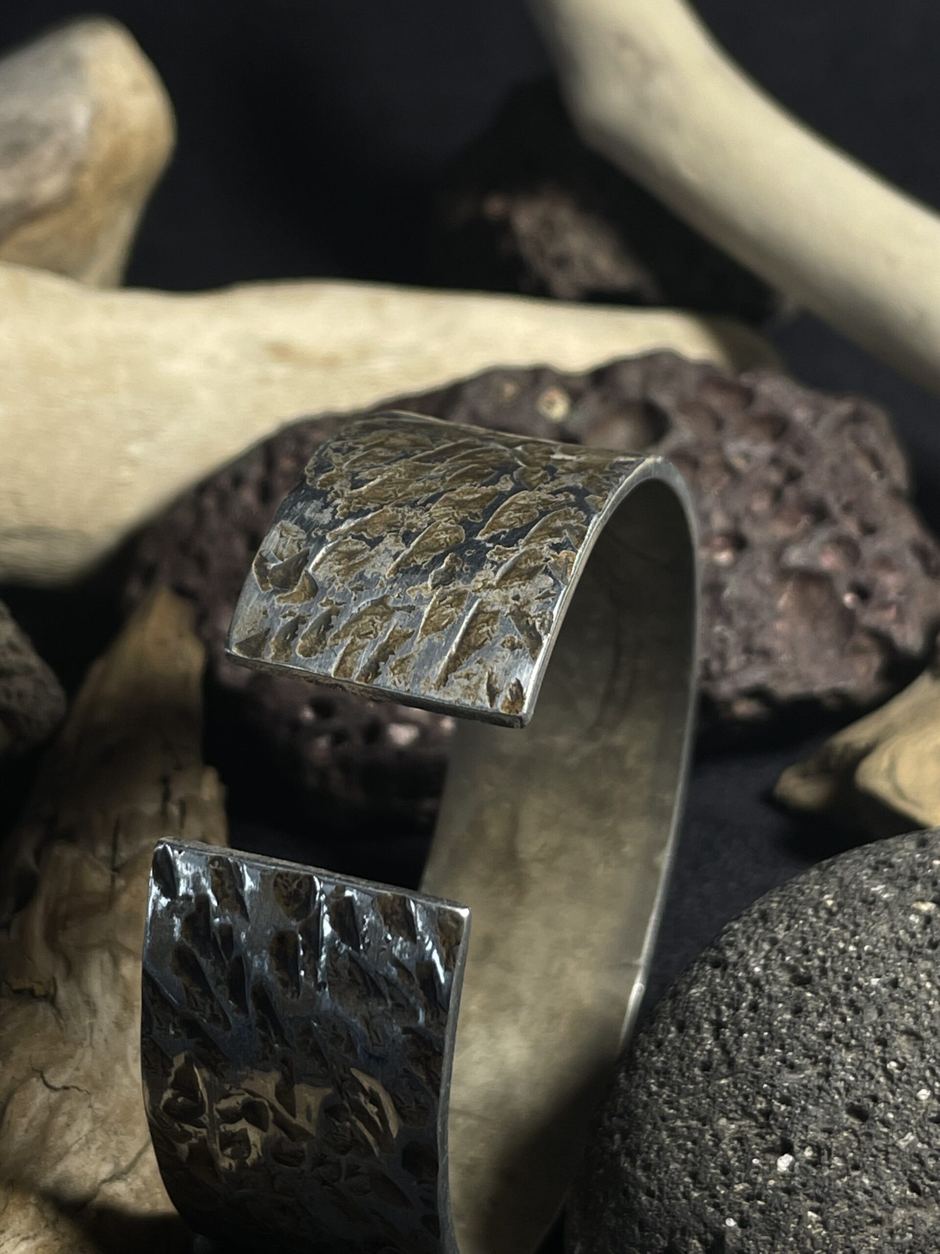 Cette manchette au martelage irrégulier s’inscrit dans la collection IMPACT.