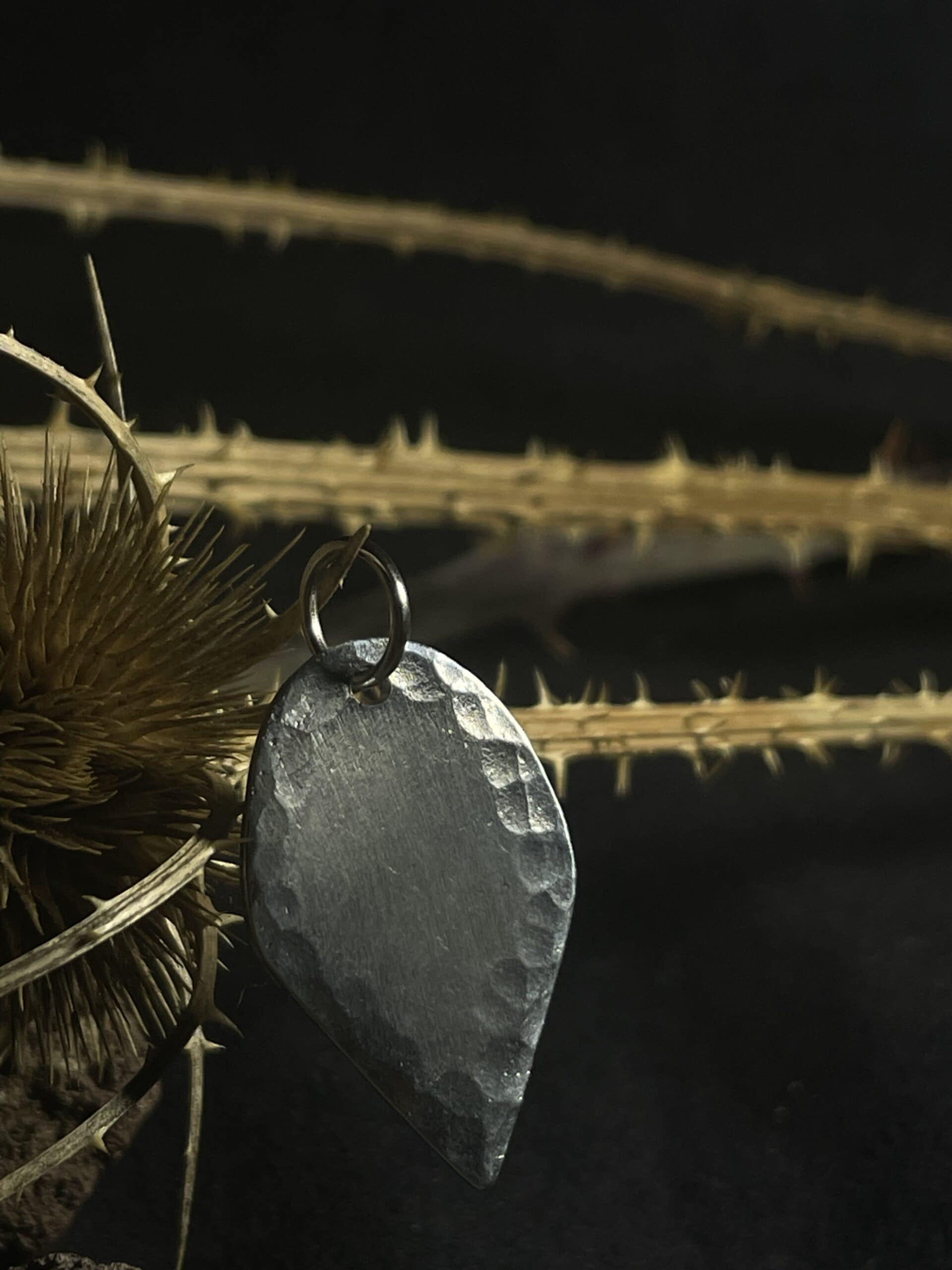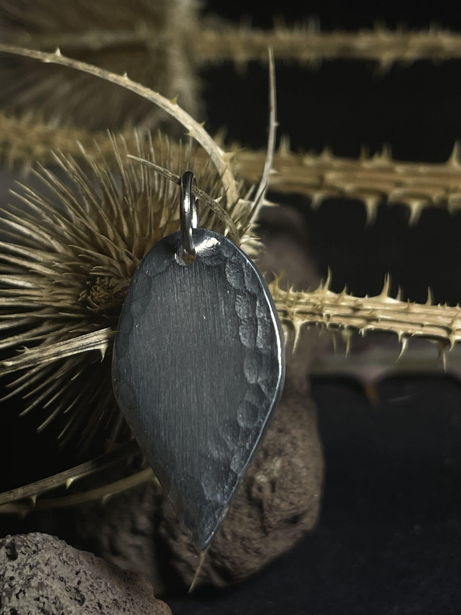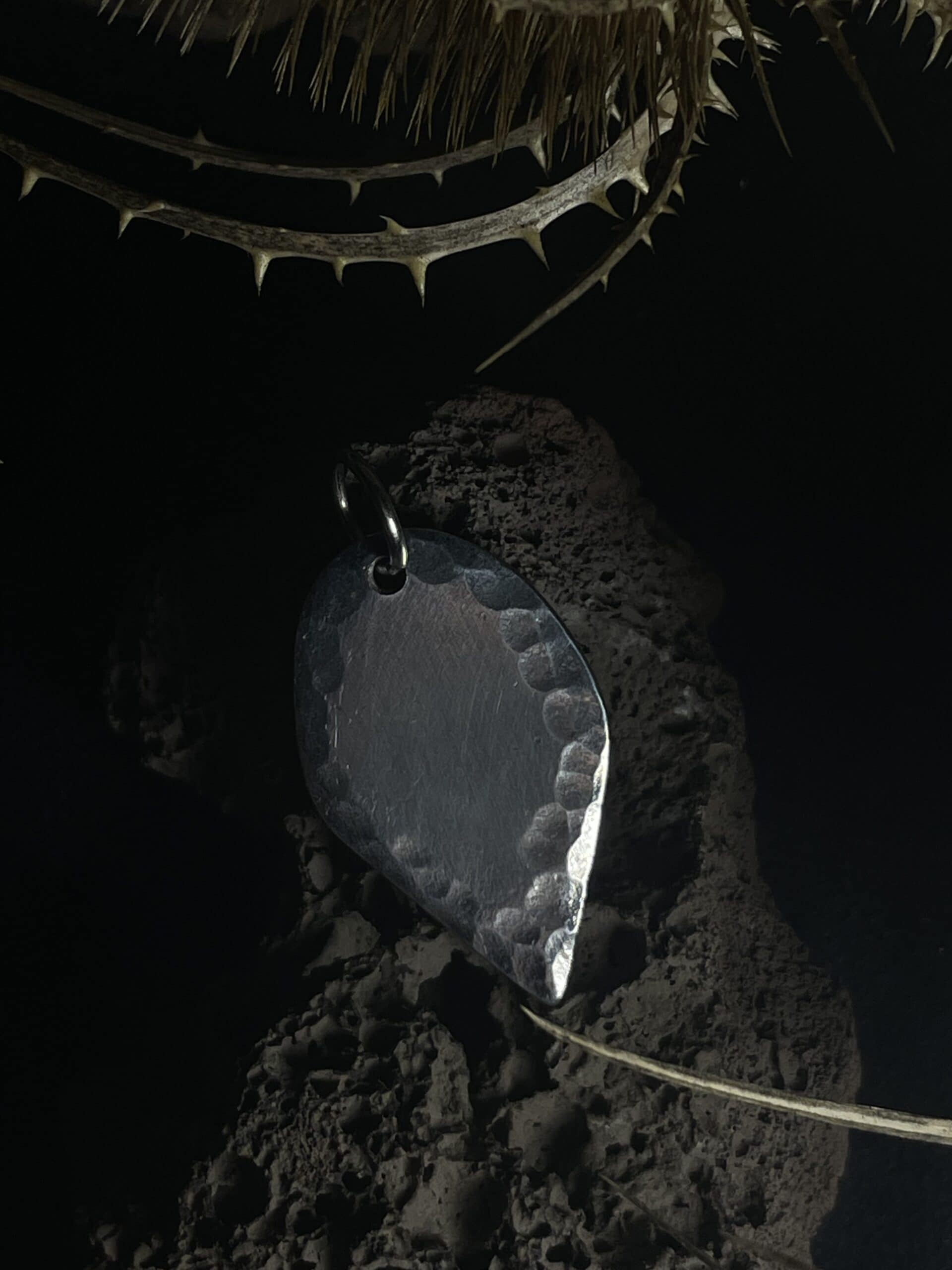 Inspiré des silex, ce pendentif de la collection IMPACT évoque des courbes brutes et tranchantes, héritées du Néolithique.