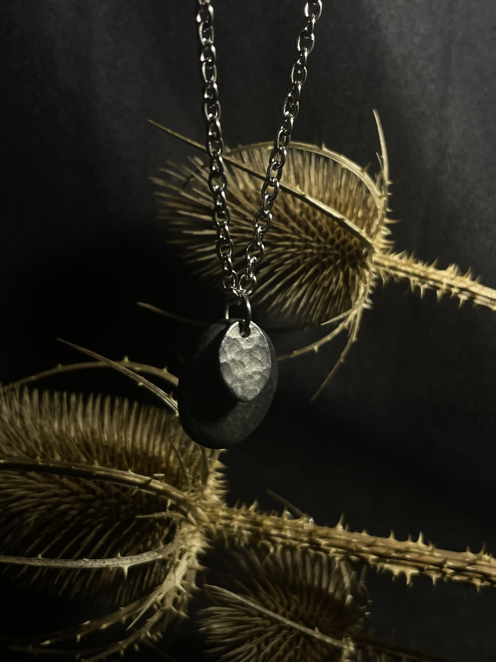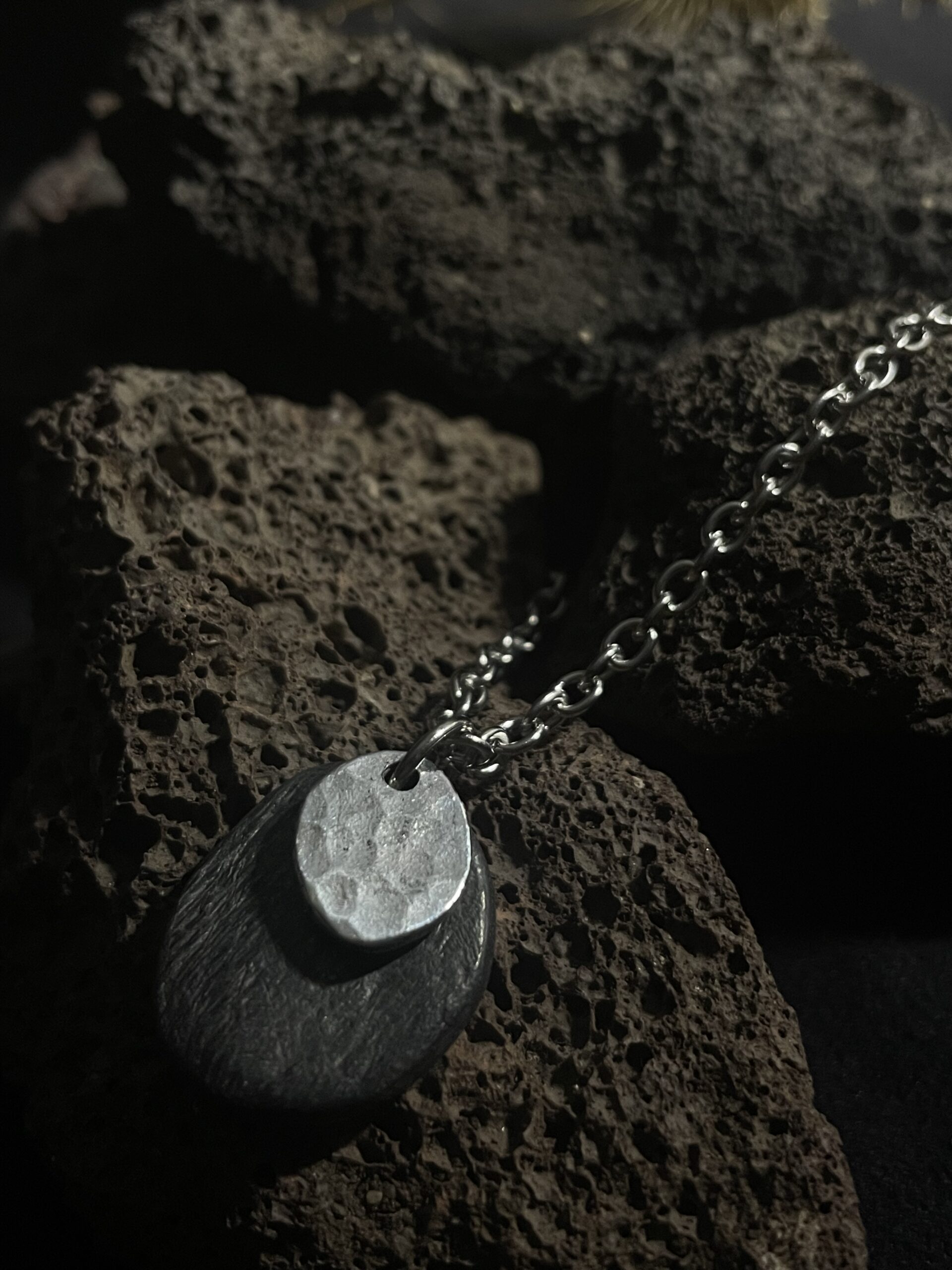 Pendentif ardoise et aluminium martelé.